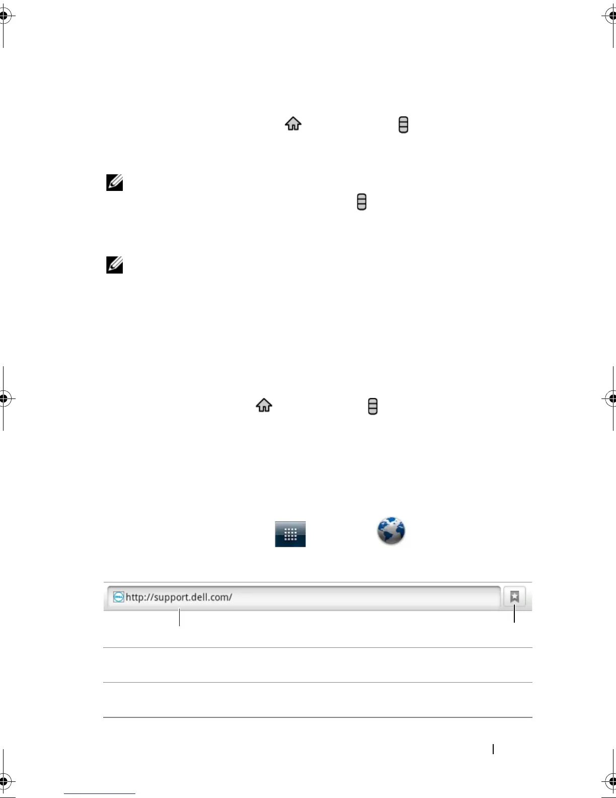 2 Touch to view bookmarks, most visited web pages, and browsing