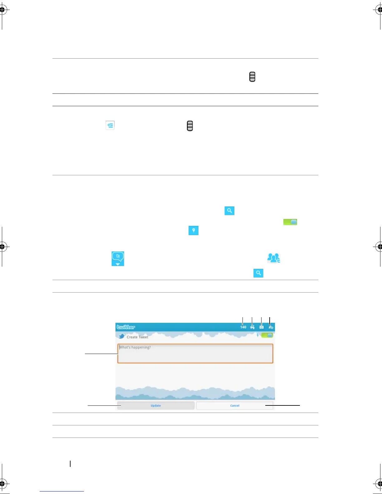 9 • Touch to search for tweets about a desired topic, or tweets sent by