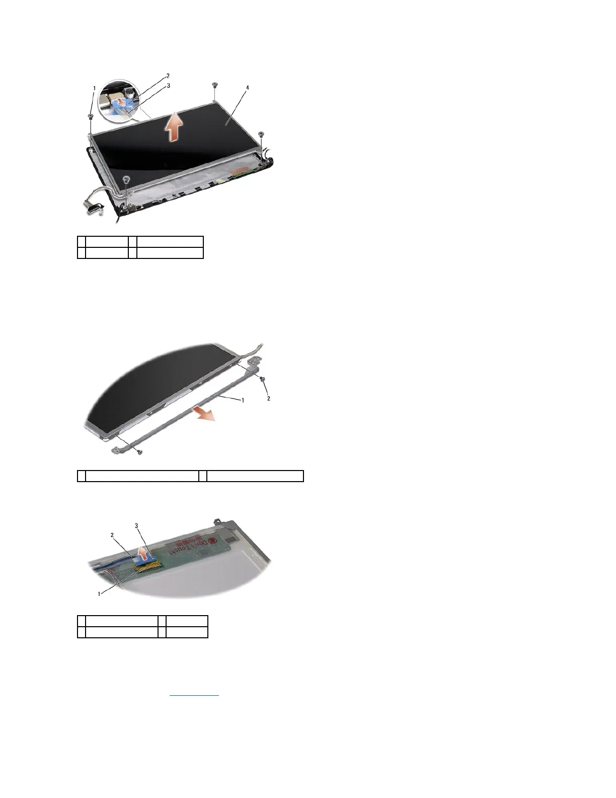 7. Remove the four screws (two on each side of the display panel) that secure the display panel brackets to the display panel and remove the display