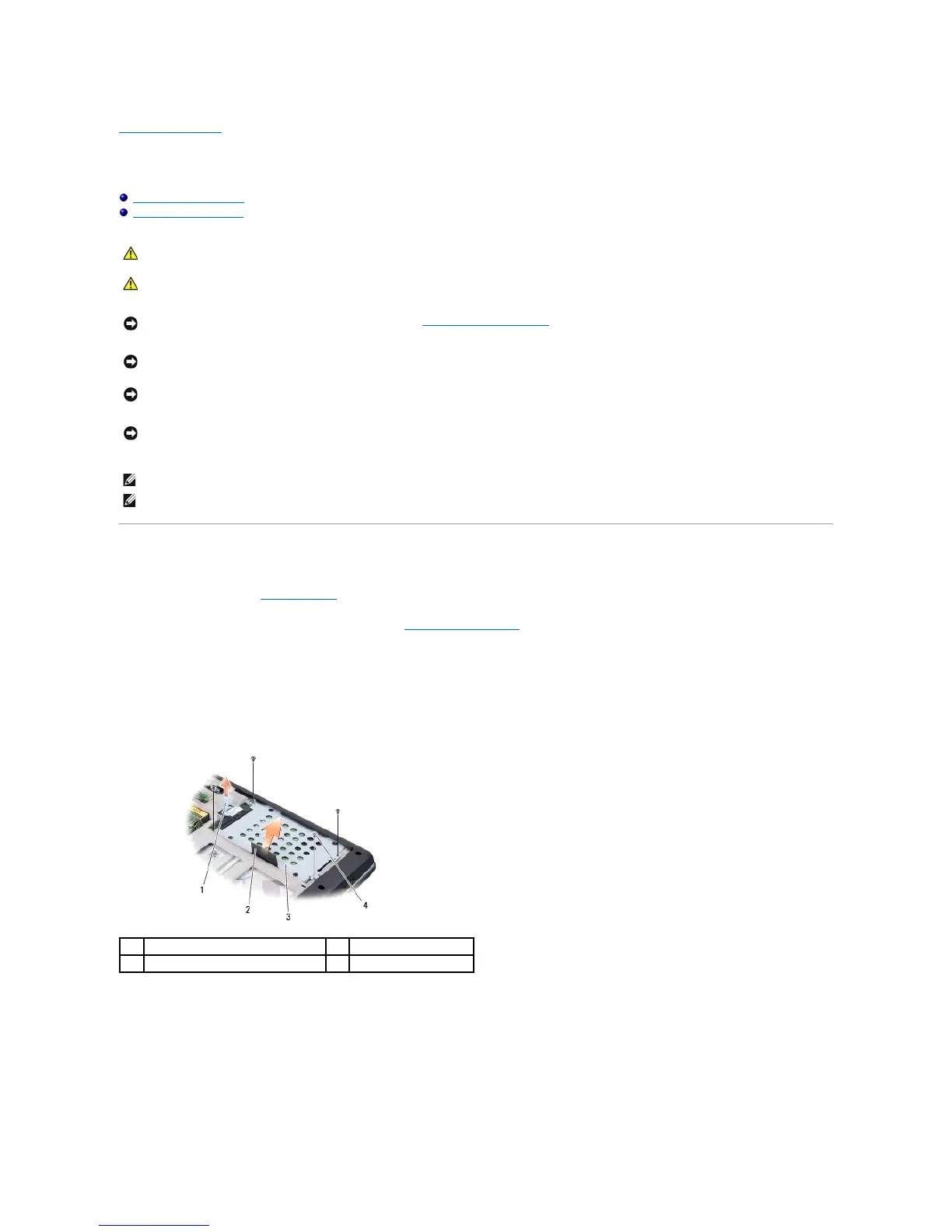 NOTICE: To prevent data loss, turn off your computer (see Turning Off Your Computer) before removing the hard drive. Do not remove the hard