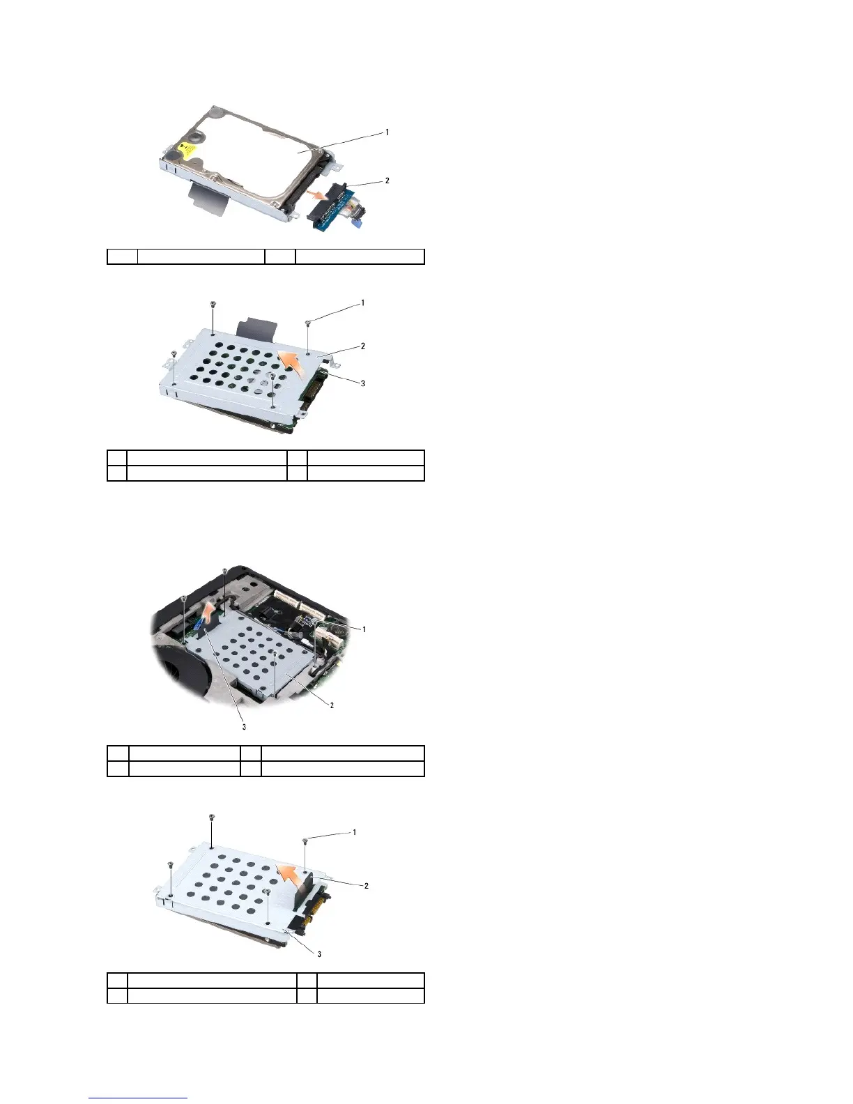 ¡ Remove the four M3 x 3-mm screws securing the hard drive cage to the hard drive.