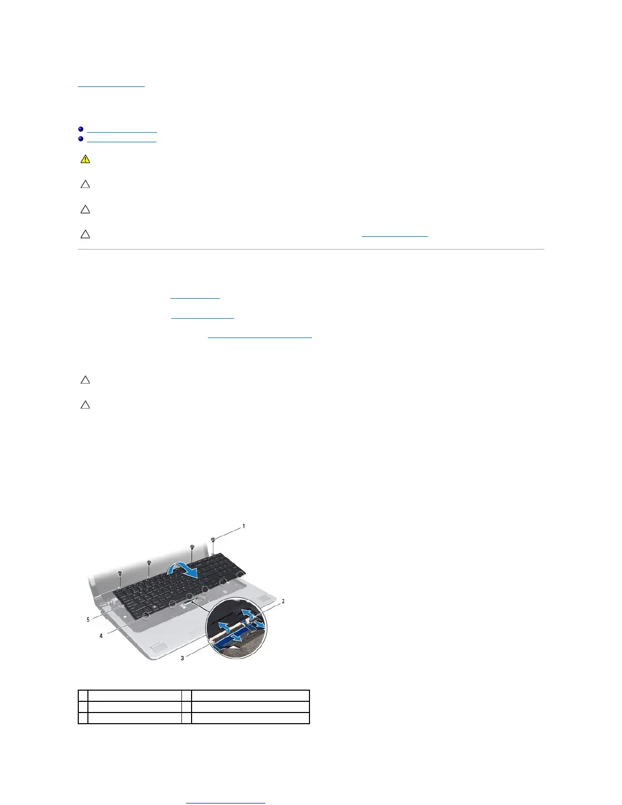 CAUTION: Be extremely careful when removing and handling the keyboard. Failure to do so could result in scratching the display panel.