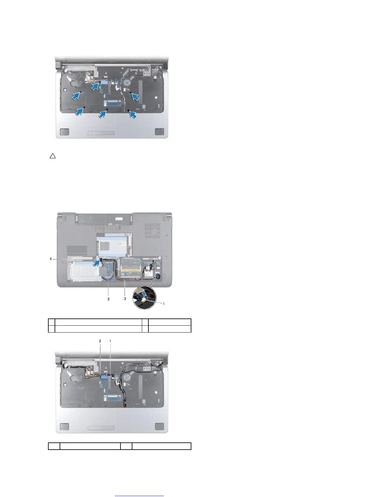 12. Disconnect the display cable, camera cable, power button cable, and the touch pad cable from the respective system board connectors.