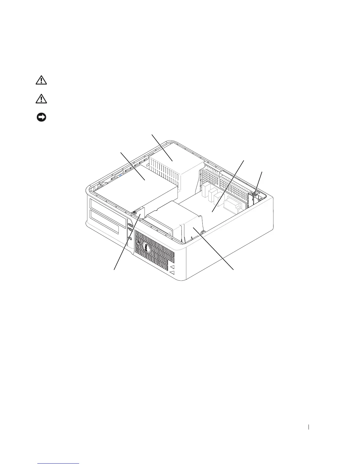 VÝSTRAHA: Zabraňte nebezpečí úrazu elektrickým proudem - před demontáží krytu počítače vždy odpojte