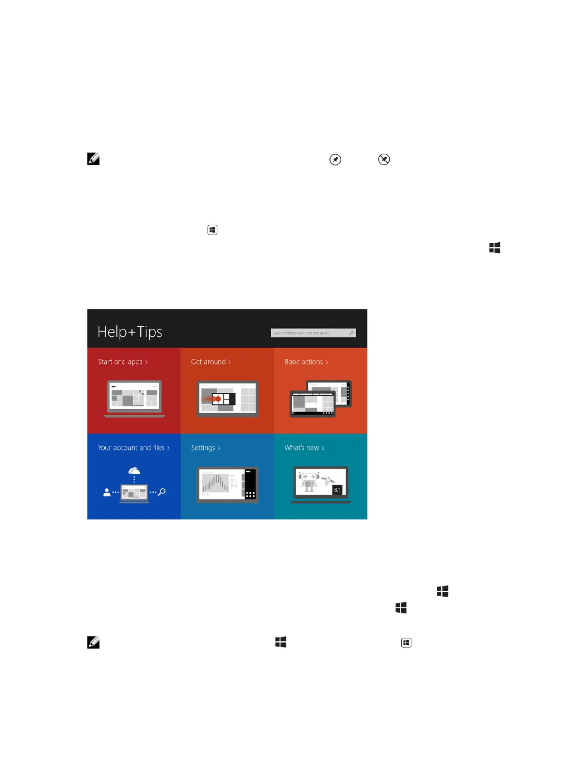 You can touch the Help+Tips tile on the Start screen to get help and tips on using Windows 8.1.