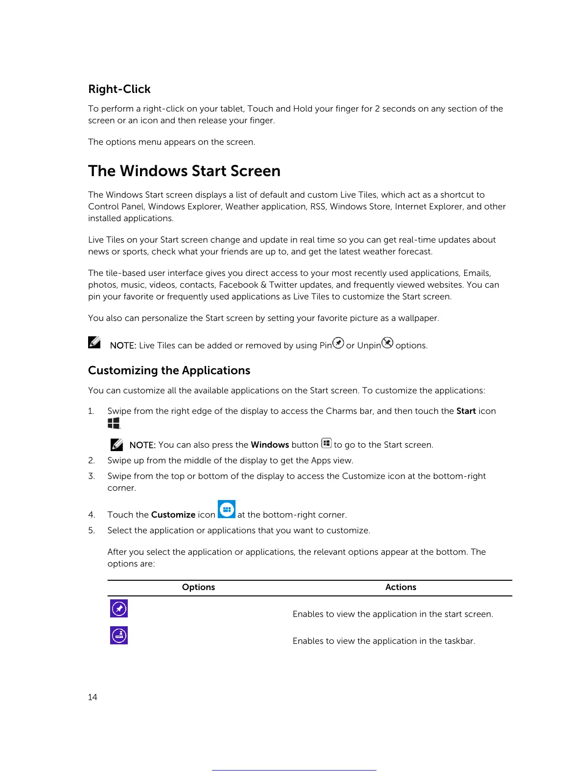 pin your favorite or frequently used applications as Live Tiles to customize the Start screen.