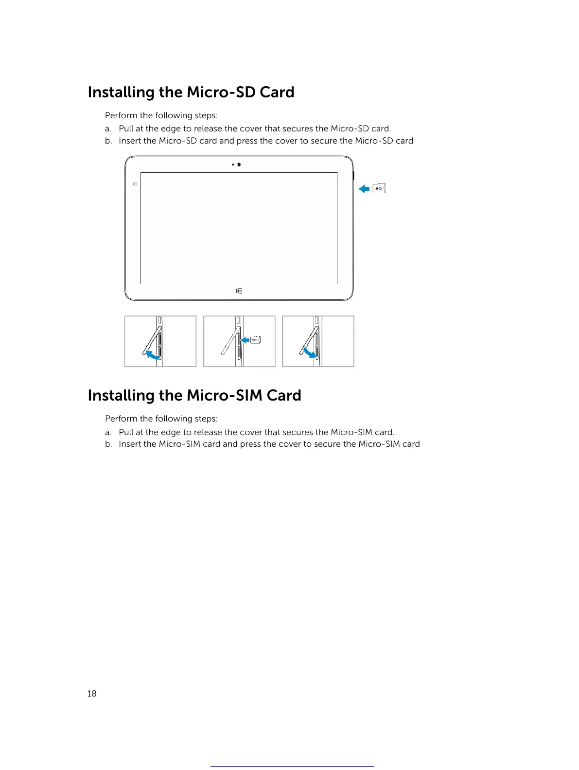 b. Insert the Micro-SIM card and press the cover to secure the Micro-SIM card