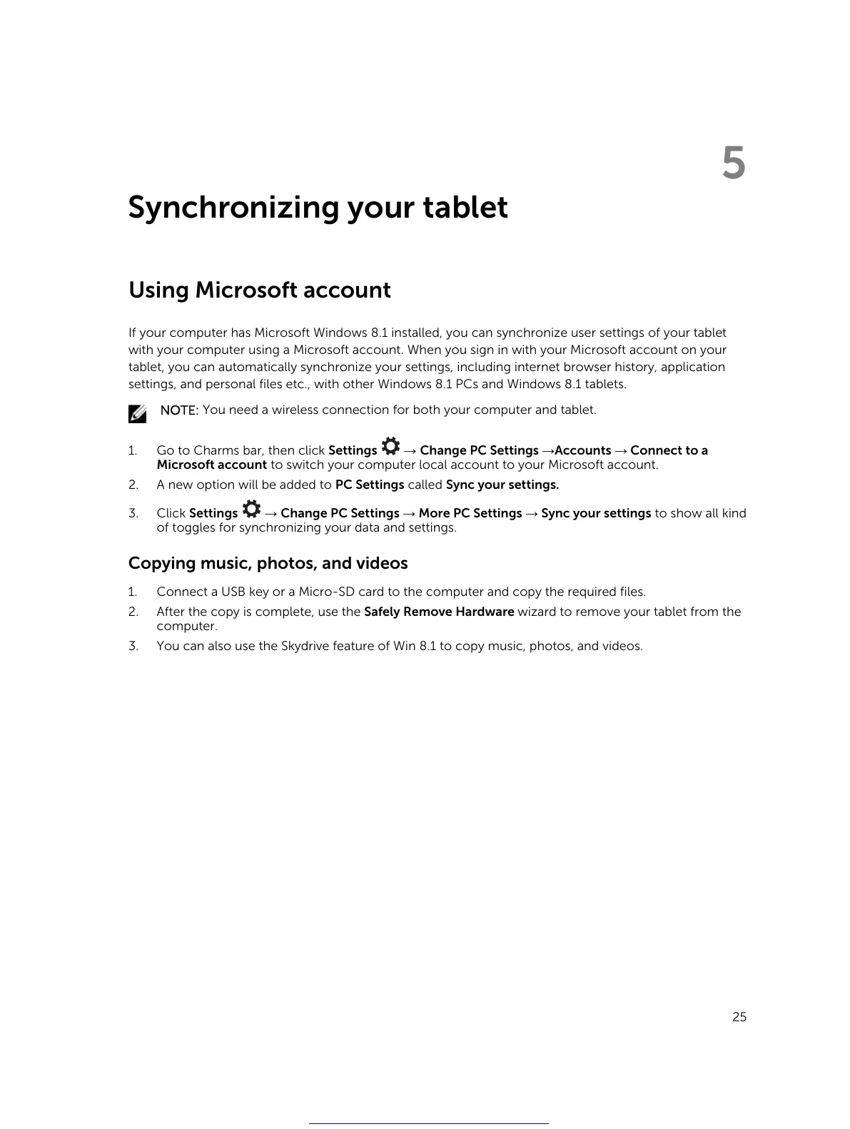 If your computer has Microsoft Windows 8.1 installed, you can synchronize user settings of your tablet