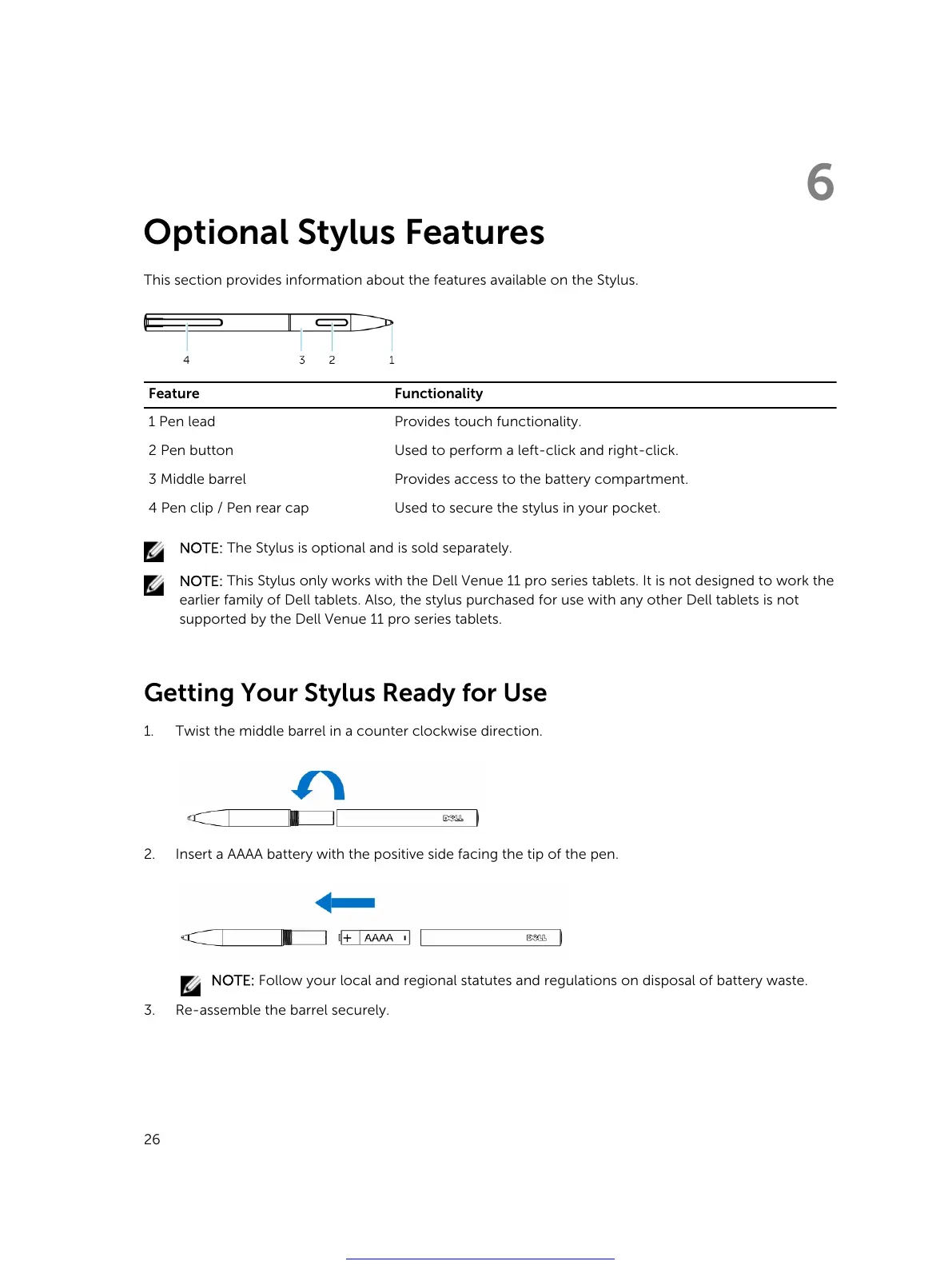 earlier family of Dell tablets. Also, the stylus purchased for use with any other Dell tablets is not