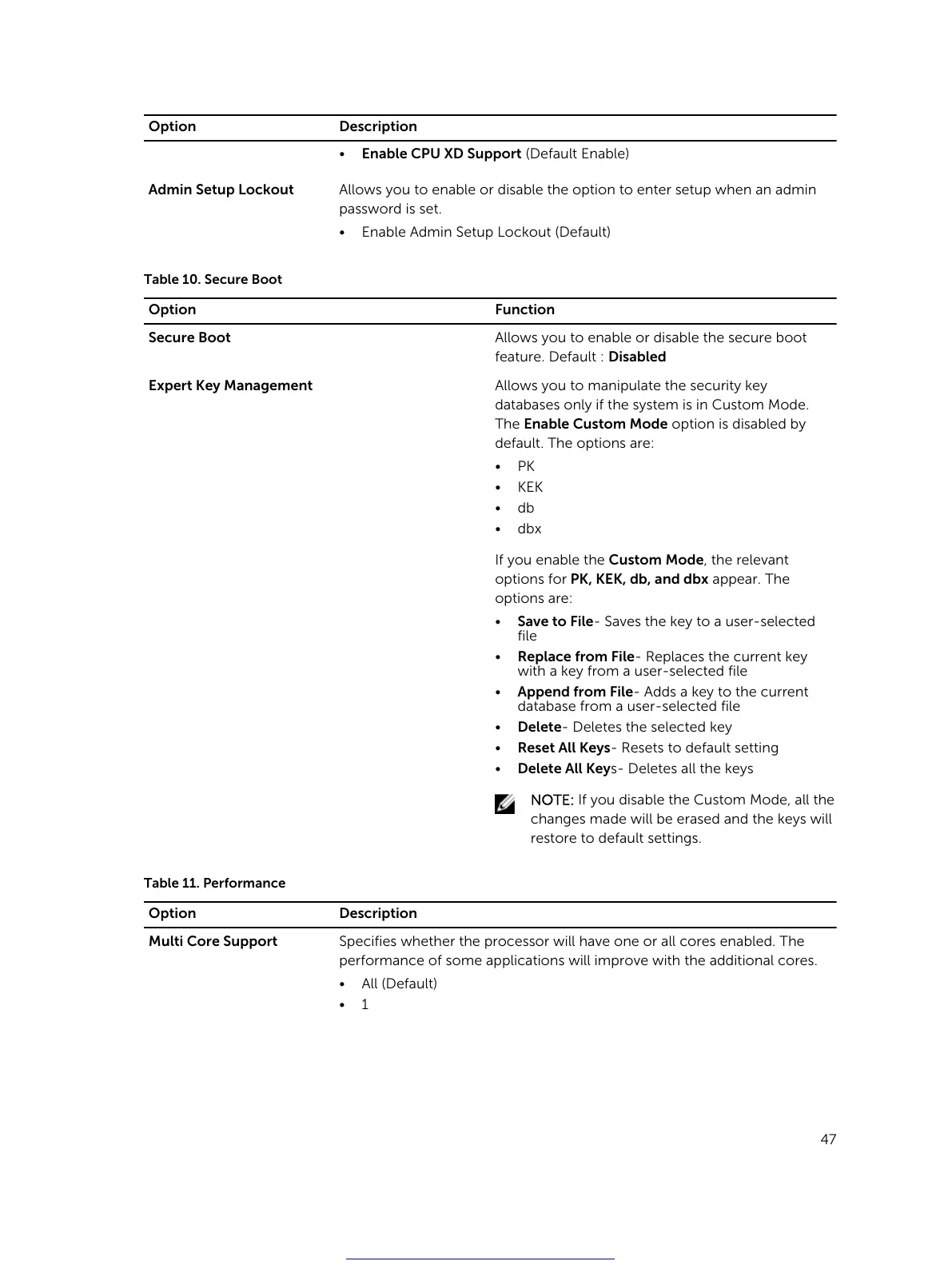 Table 10. Secure Boot