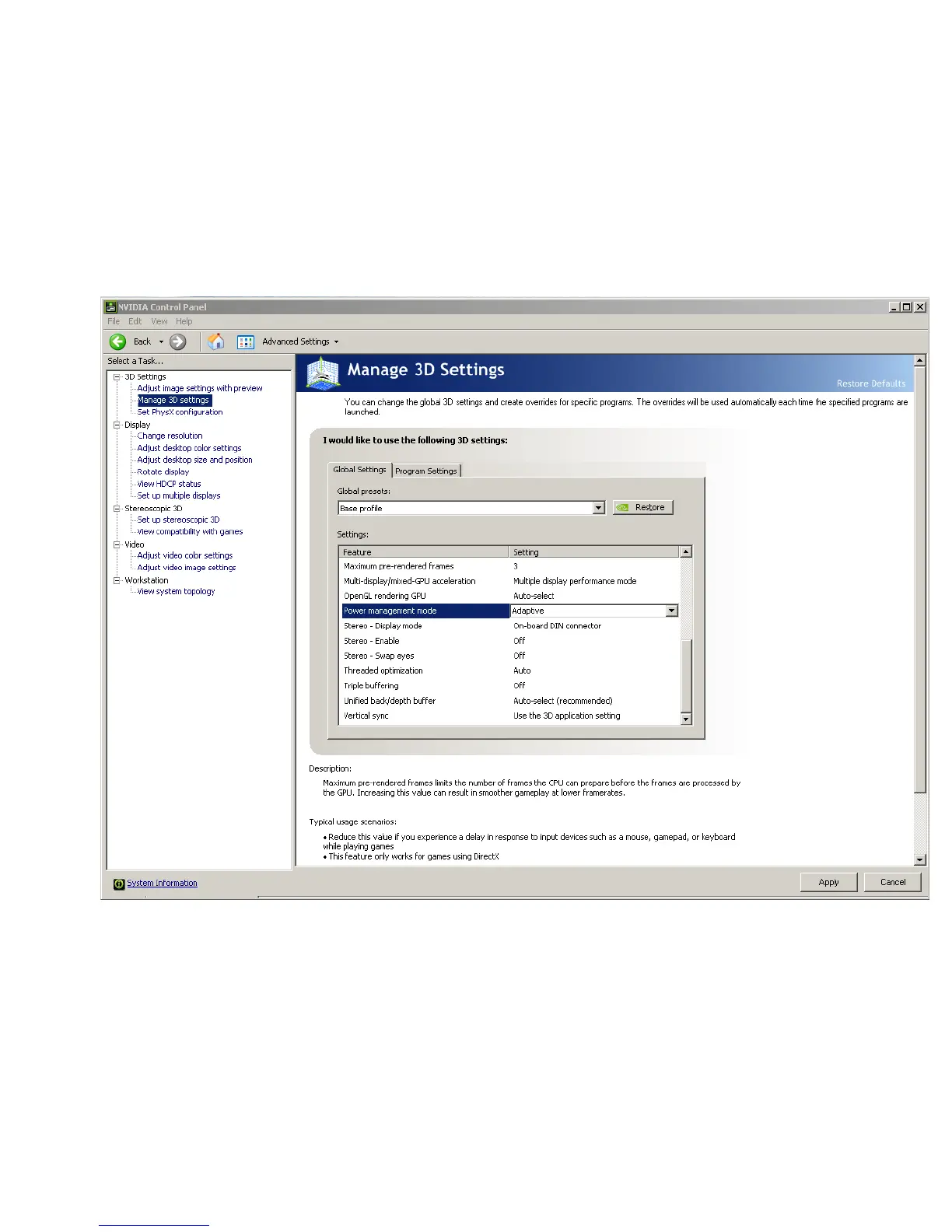 8. Scroll down and locate the Power Management Mode feature. The default setting is Adaptive as