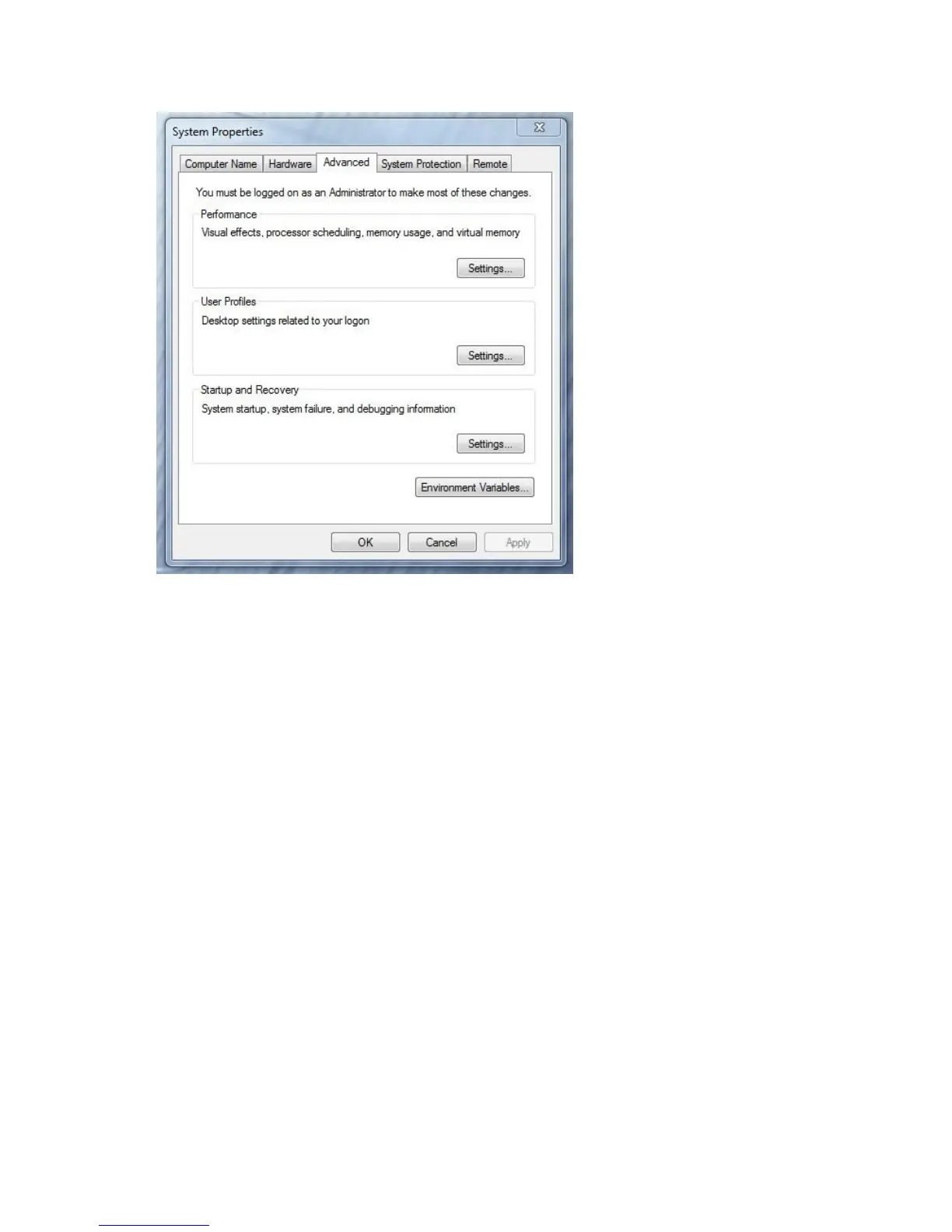 5. The System properties window will be displayed. (Picture below).