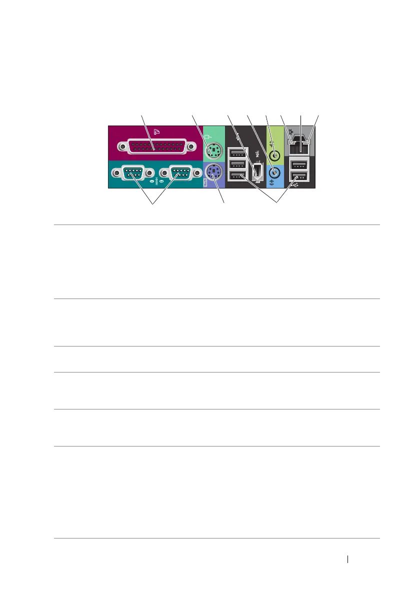 1 parallel connector Connect a parallel device, such as a printer, to the parallel