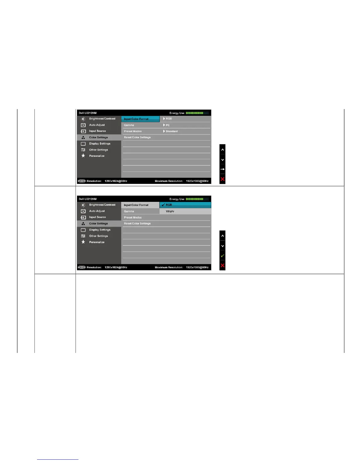 Input Color Format Choose the RGB option if the monitor is connected to a computer or a DVD using a VGA or DVI cable. Choose the YPbPr option if the monitor is connected to a DVD by a YPbPr to VGA or if the DVD