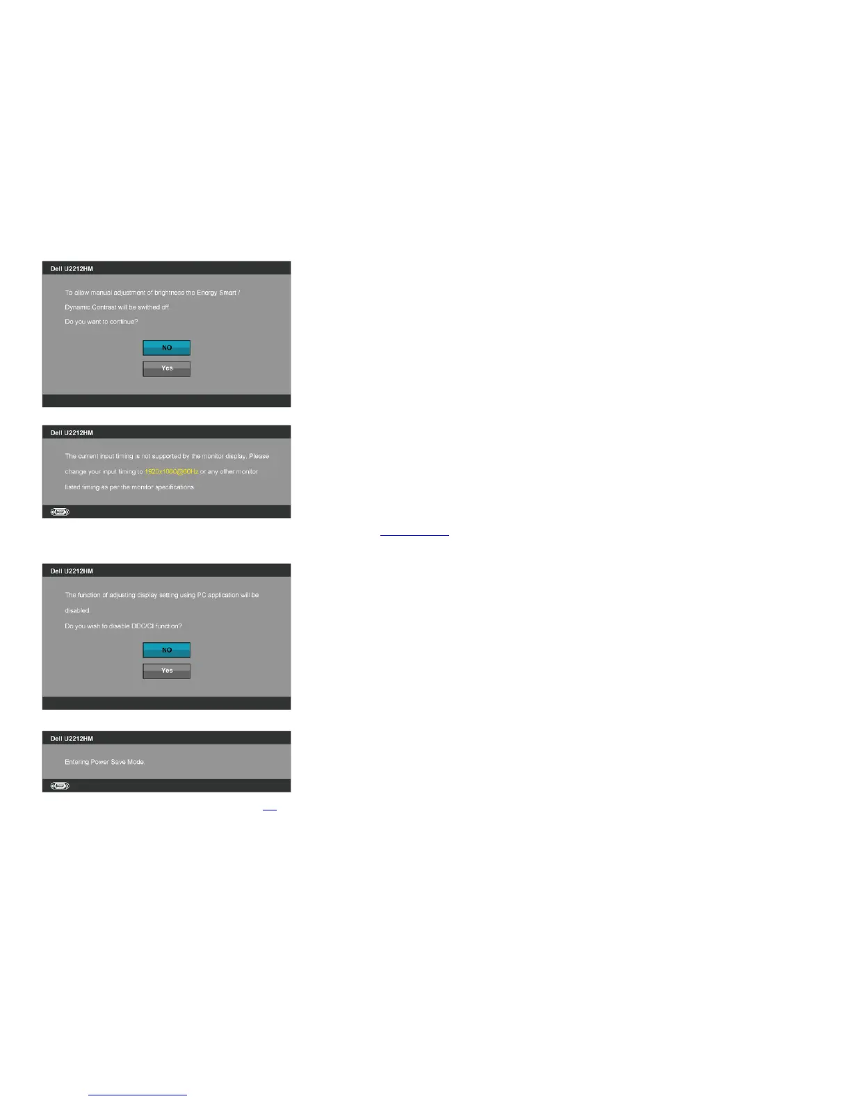 If you press any button other than the power button, one of the following messages will appear, depending on the selected input: