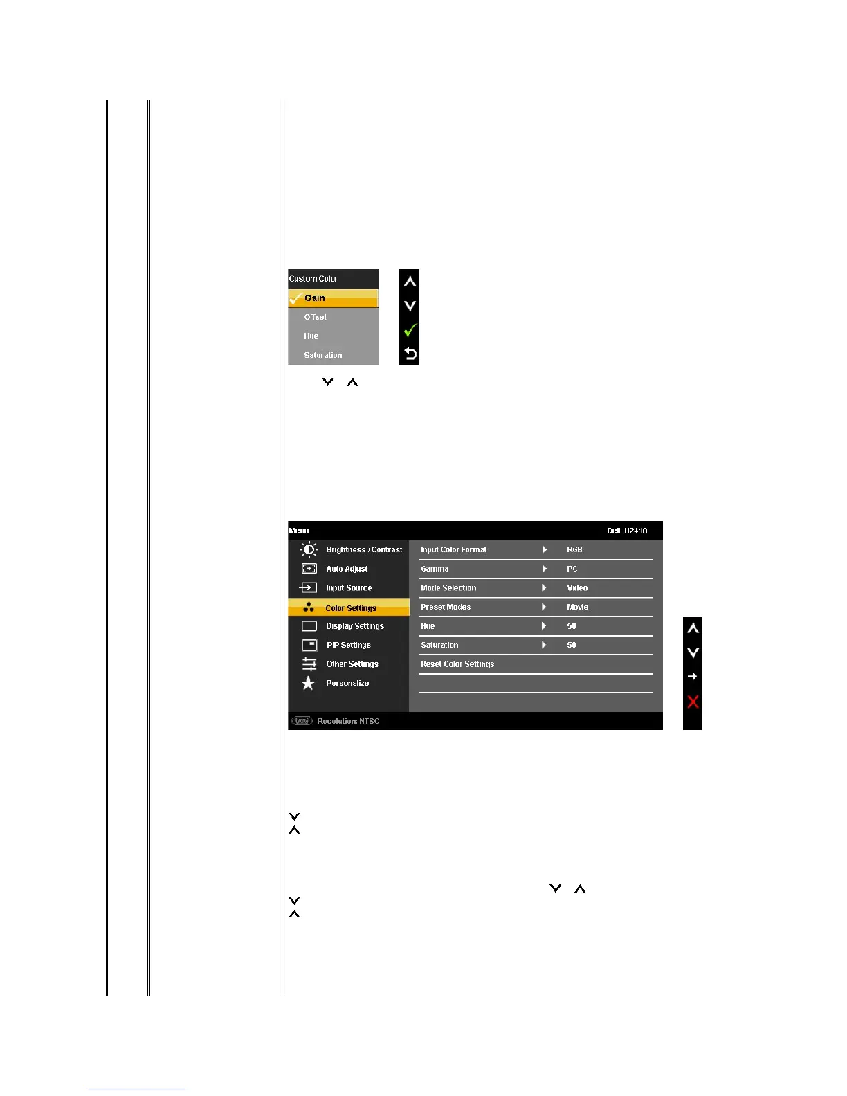 Use the or button to select the Gain, Offset, Hue, Saturation.