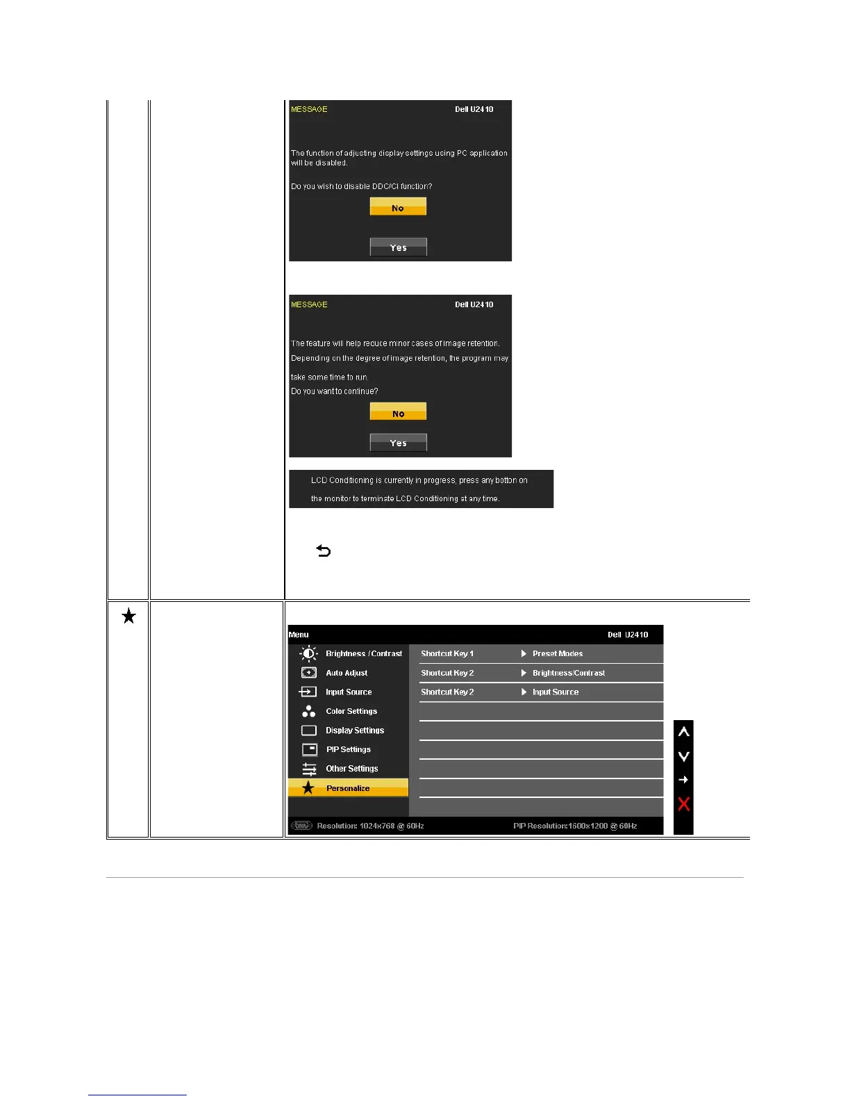 Dell U2410 - OSD Warning Messages