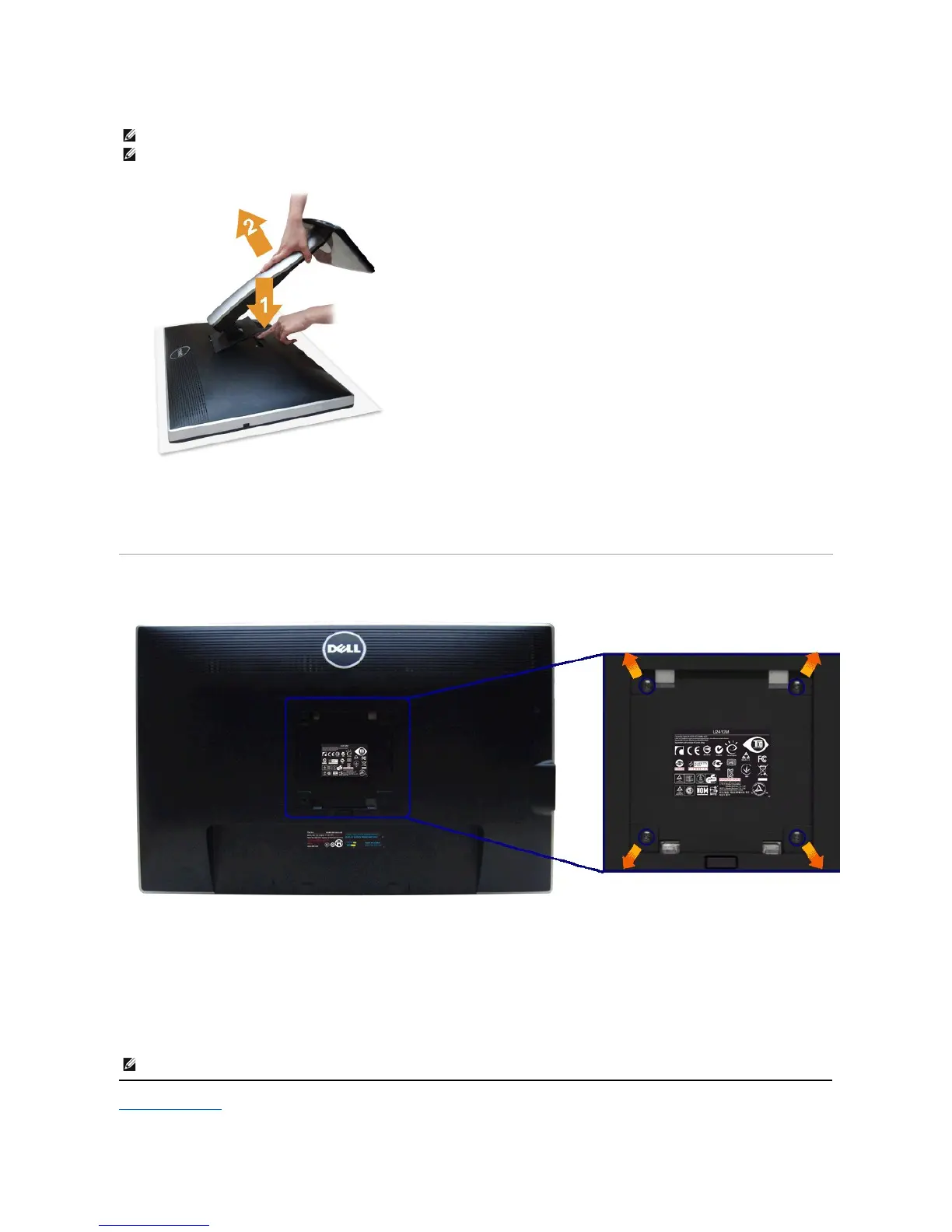 NOTE: To prevent scratches on the LCD screen while removing the stand, ensure that the monitor is placed on a soft, clean surface.