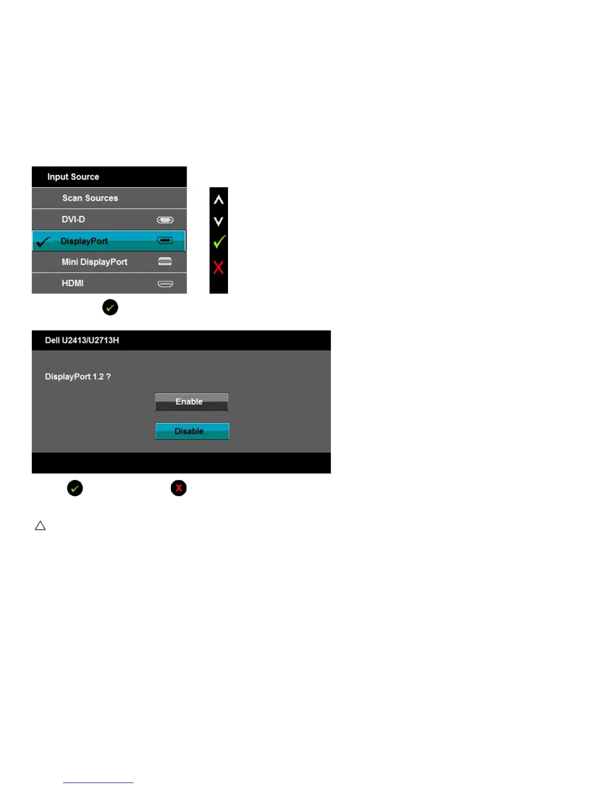 5. Use the button to enable DP1.2 or button to exit without making any changes