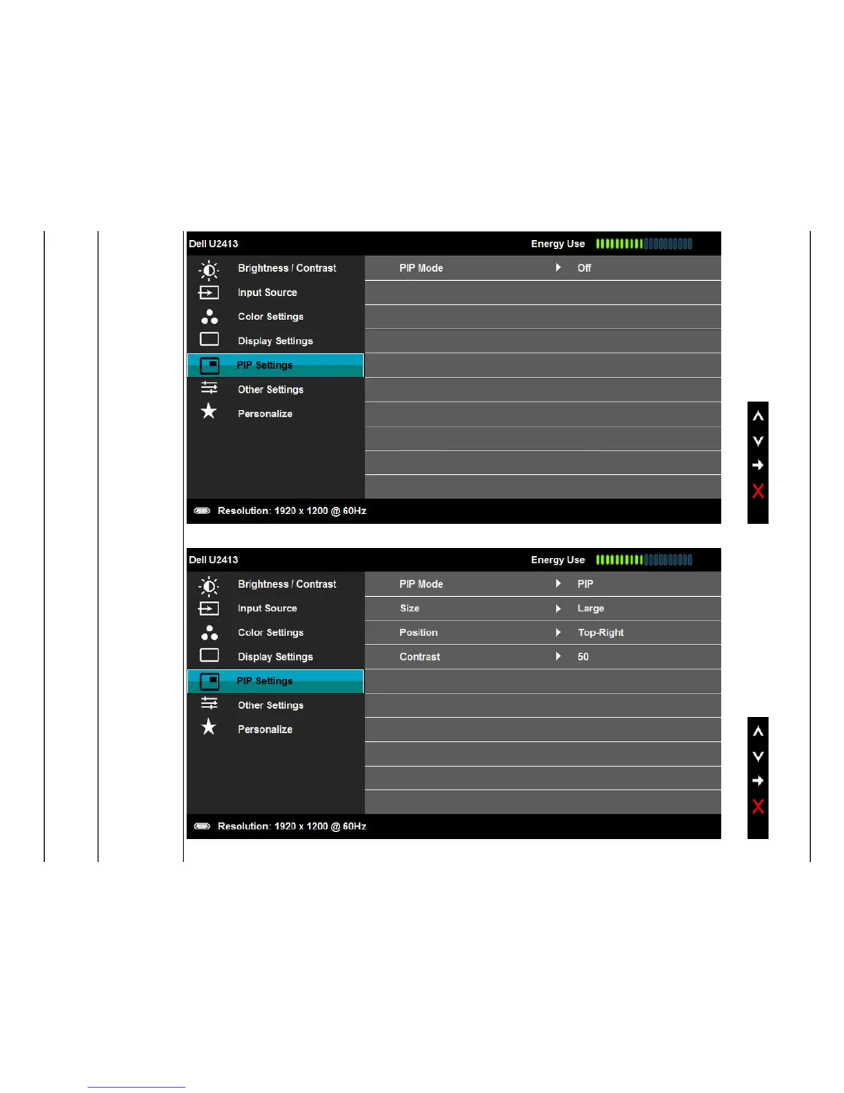PIP/PBP submenu when PIP/PBP On