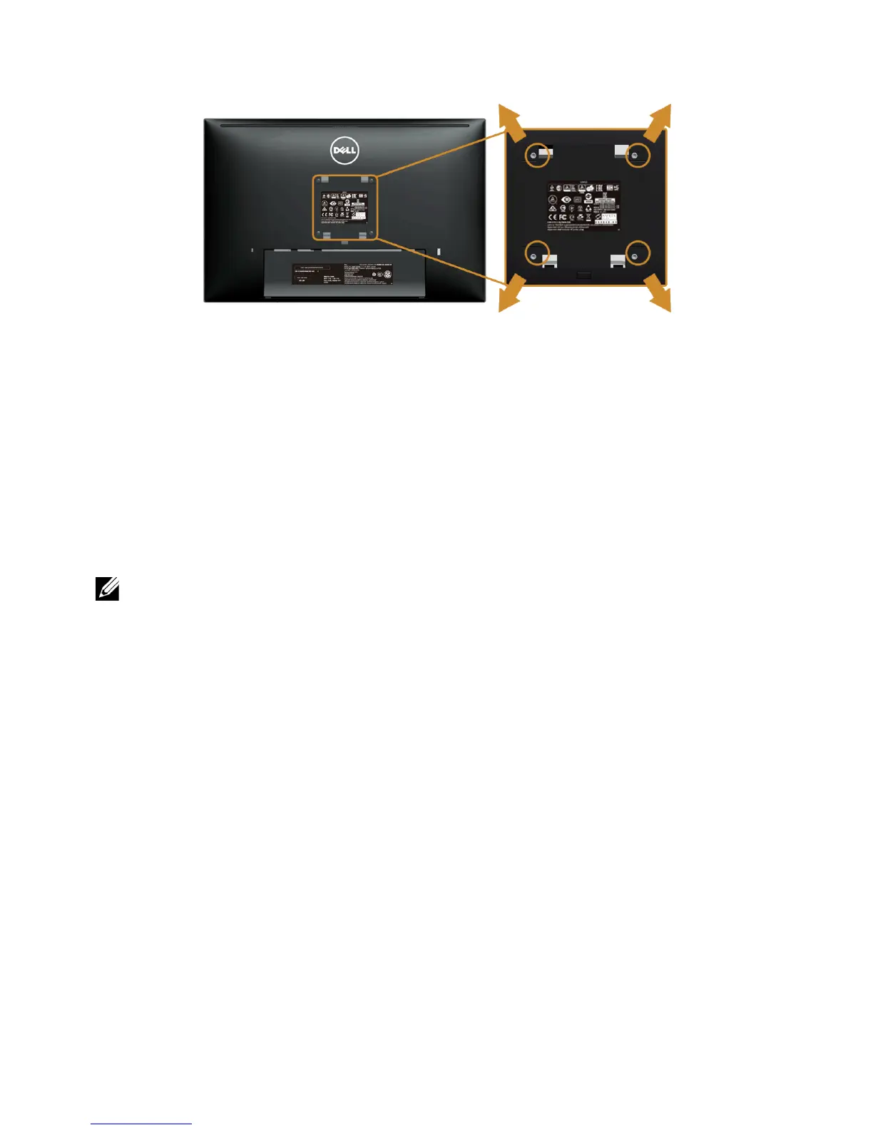 4 Attach the mounting bracket from the wall mounting kit to the monitor.