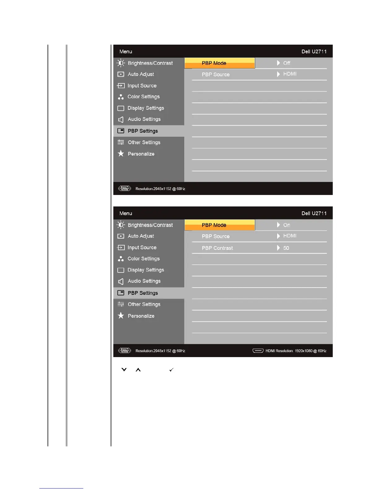 PBP submenu when PBP ON