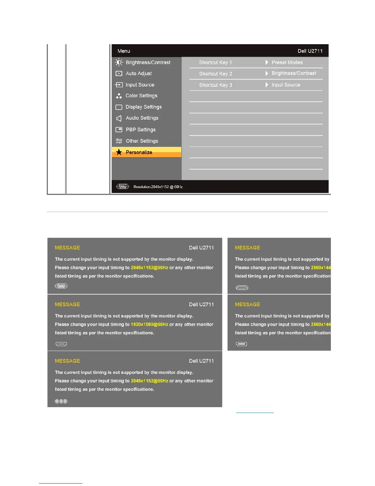 Dell U2711 - OSD Warning Messages