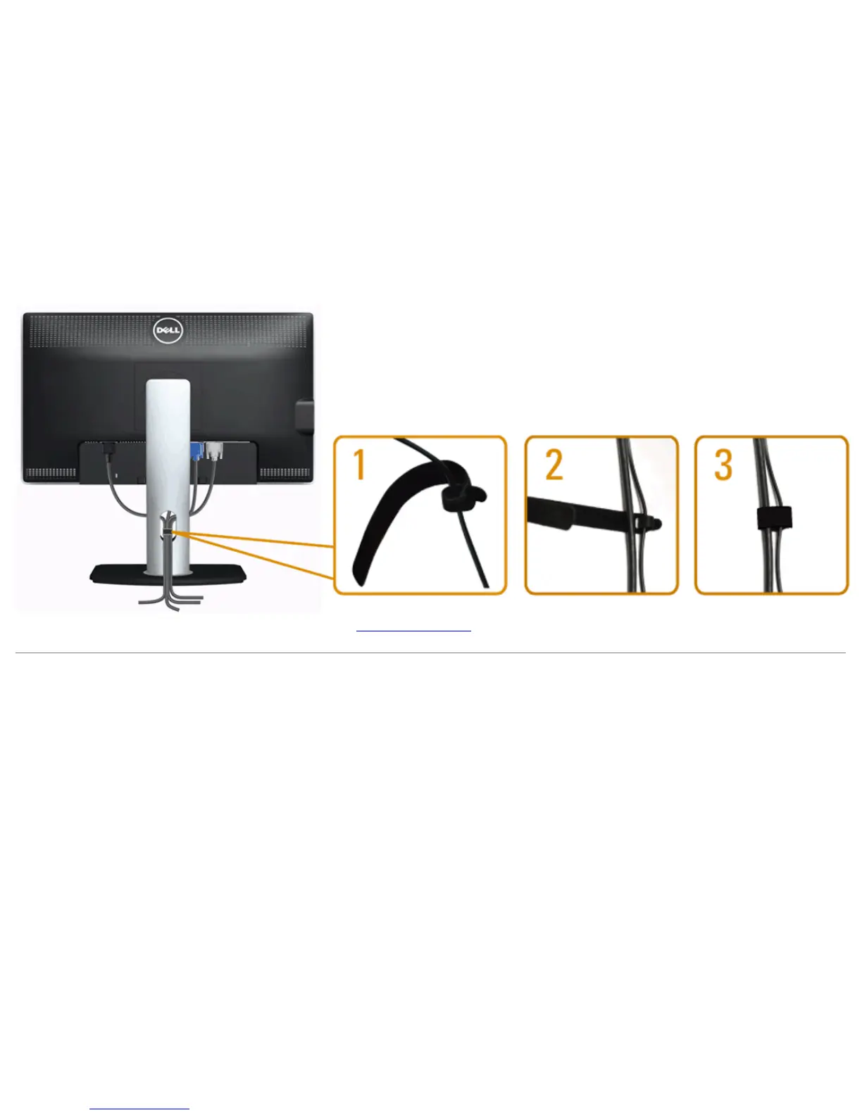 After attaching all necessary cables to your monitor and computer, (See Connecting Your Monitor for cable attachment,) use the cable management slot to organize all cables as