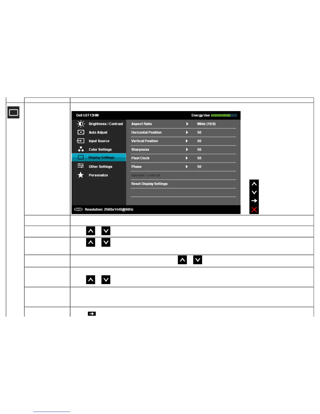 Display Settings Use the Display Settings to adjust image.