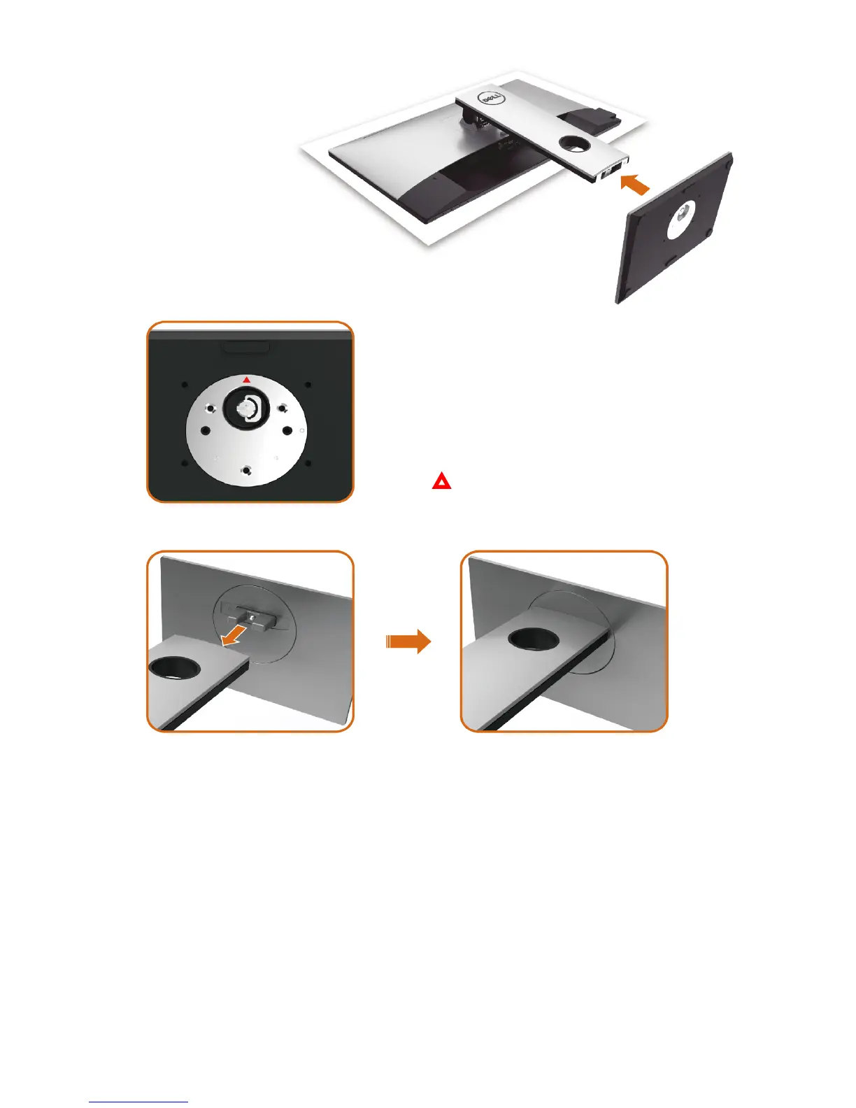 •Align the stand base protruded blocks to the matching slot on the stand.