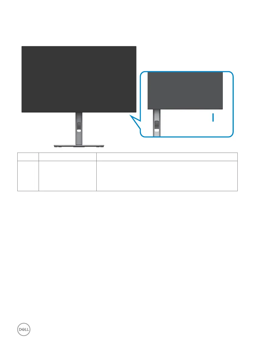 1 Power LED indicator Solid white light indicates the monitor is turned on and