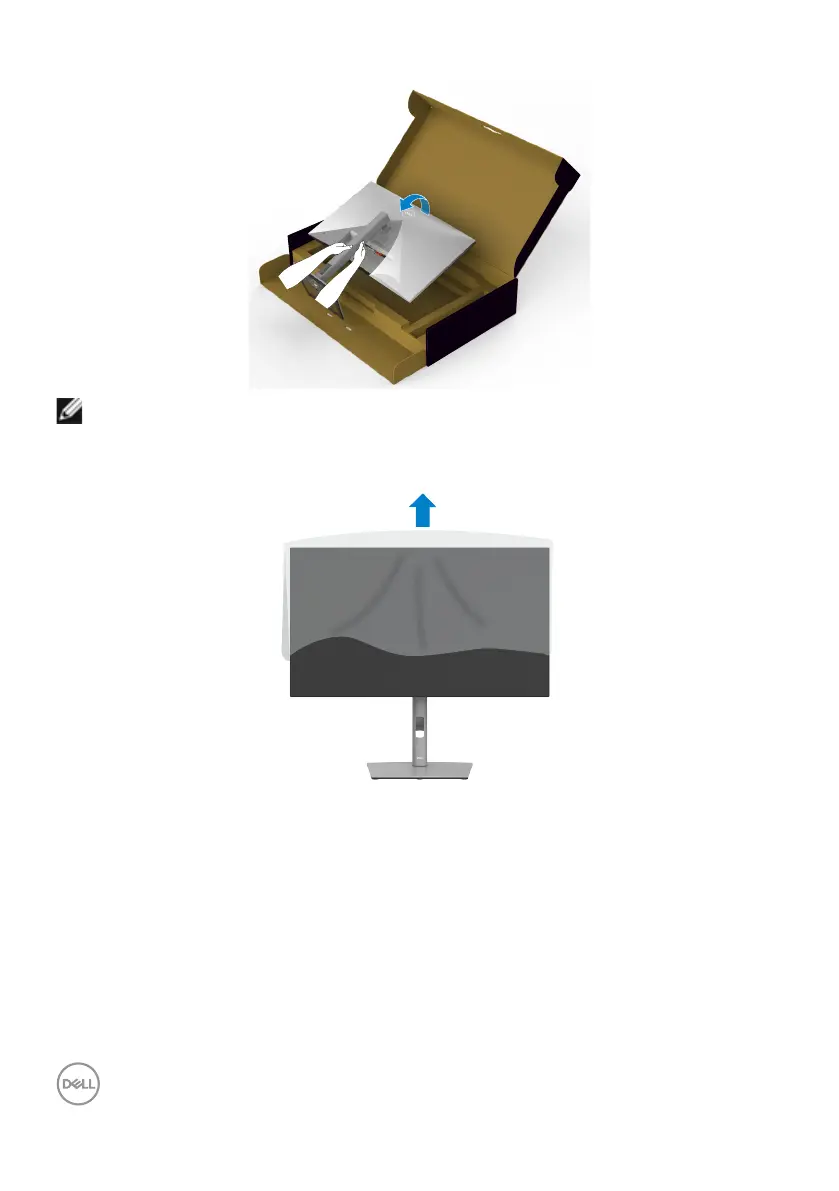 7. Hold the stand riser and lift the monitor carefully, then place it on a at surface.