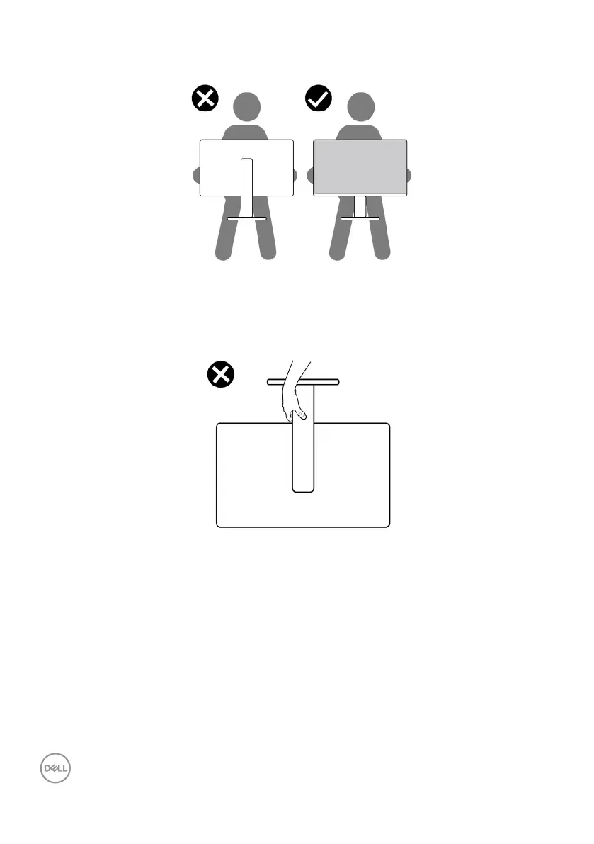 • When lifting or moving the monitor, ensure the screen is facing away from you