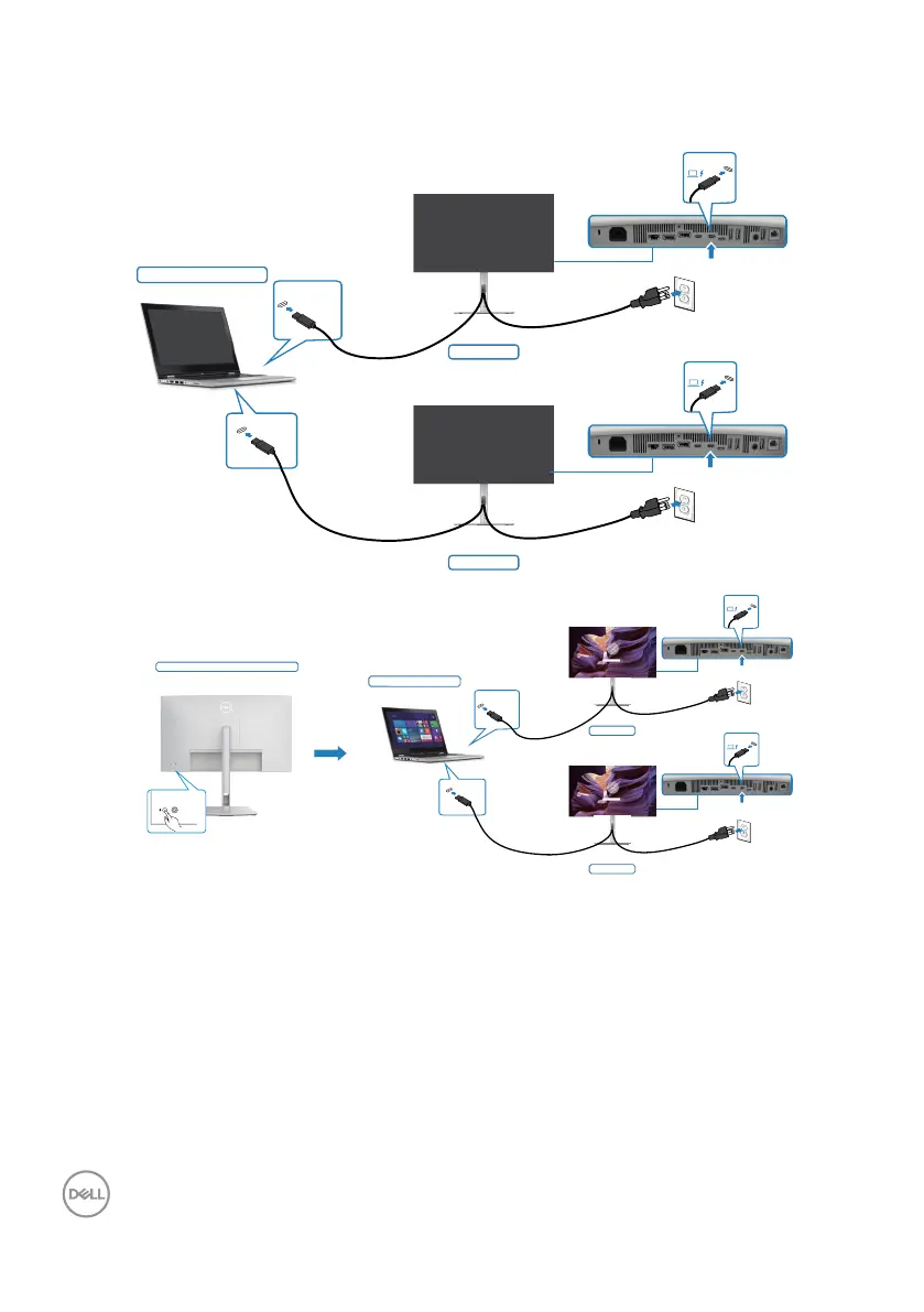are in an initially OFF power state, by pressing the power button on Monitor 1 or