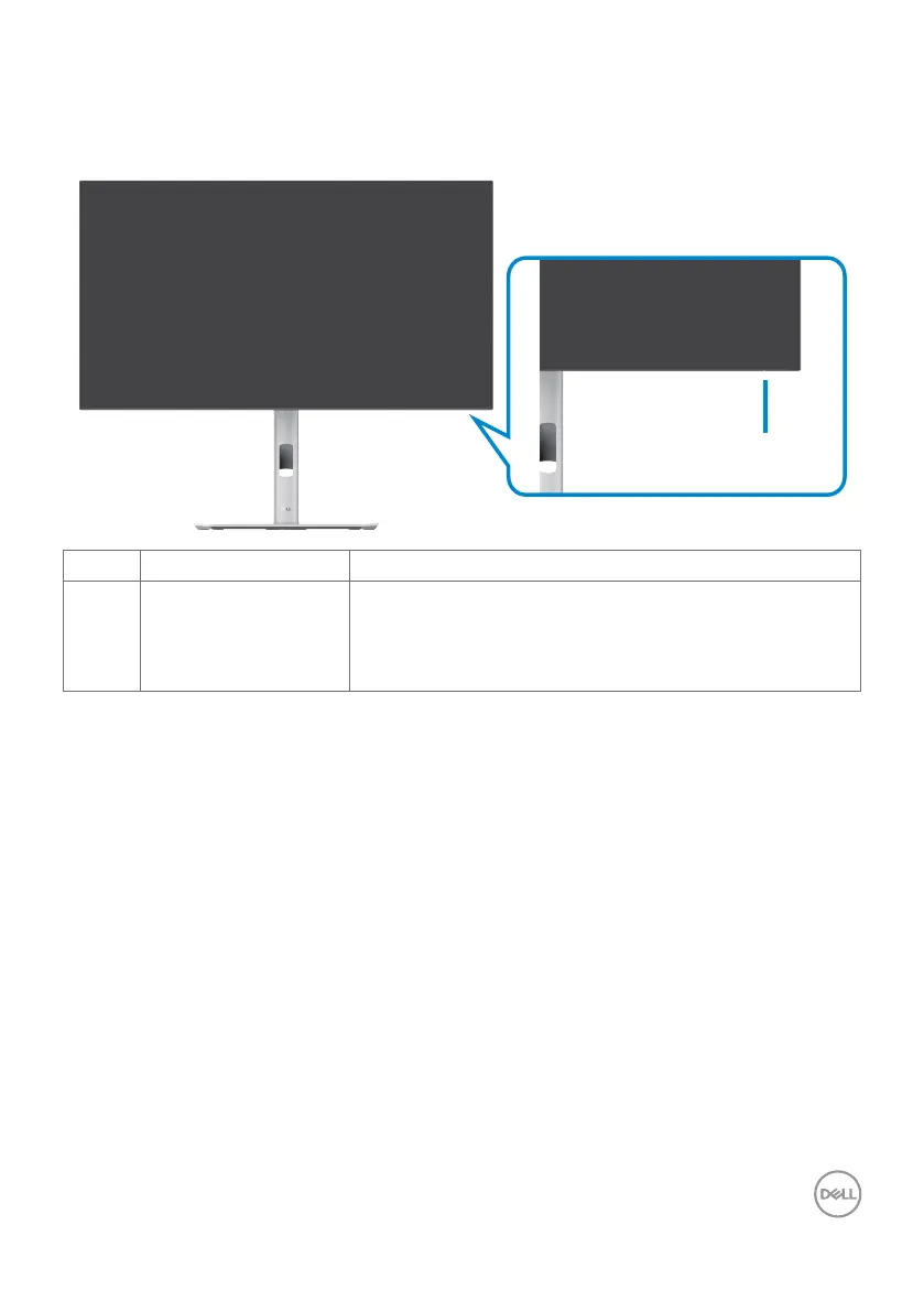 1 Power LED indicator Solid white light indicates the monitor is turned on and