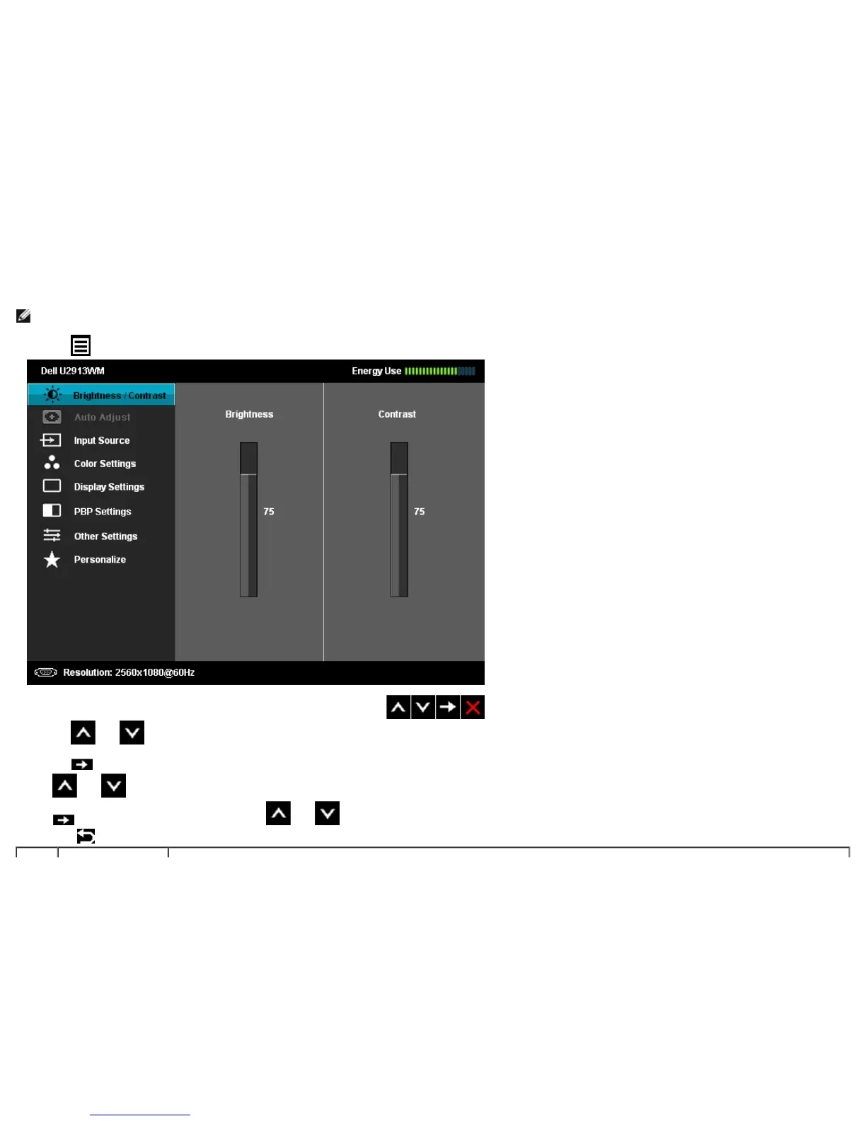 and buttons to move between the setting options. As you move from one icon to another, the option name is highlighted. See the following table for