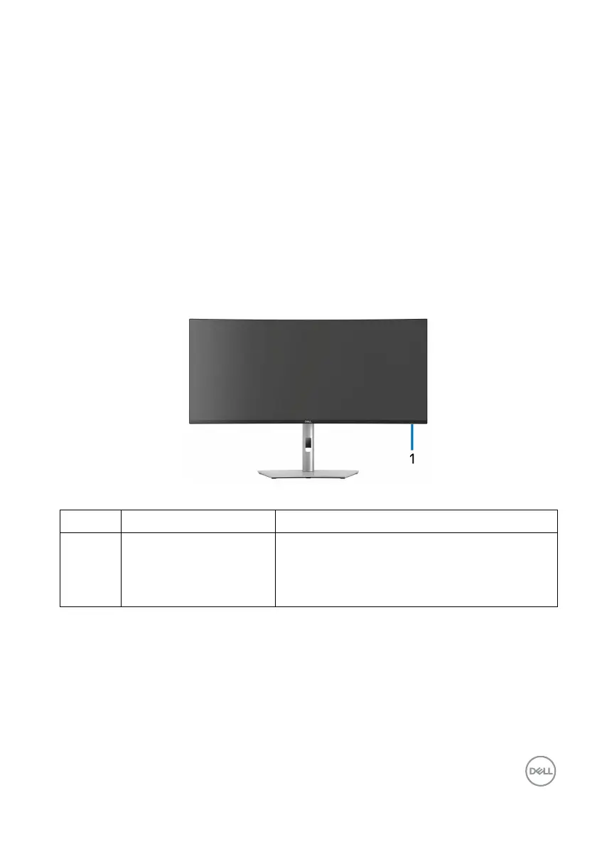 1 Power LED indicator Solid white light indicates that the monitor is