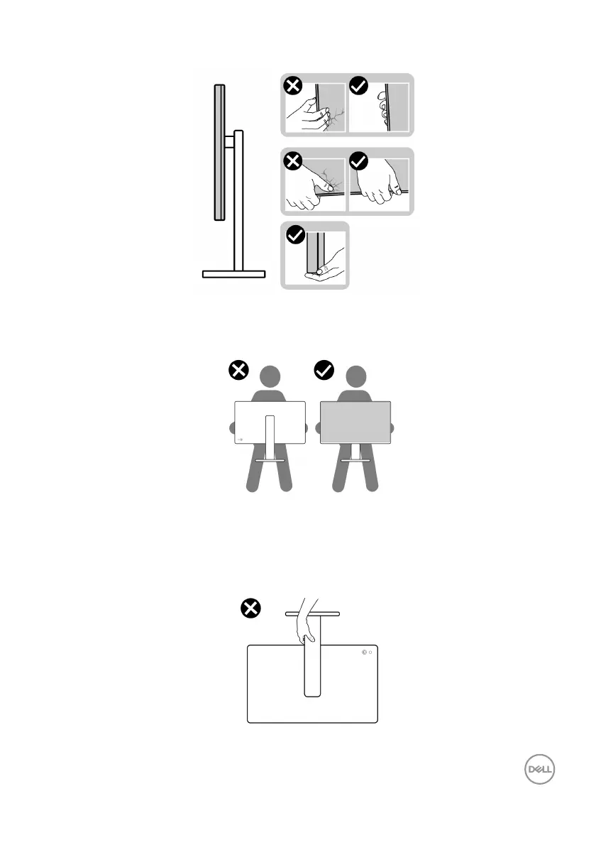 • When lifting or moving the monitor, ensure the screen is facing away from you