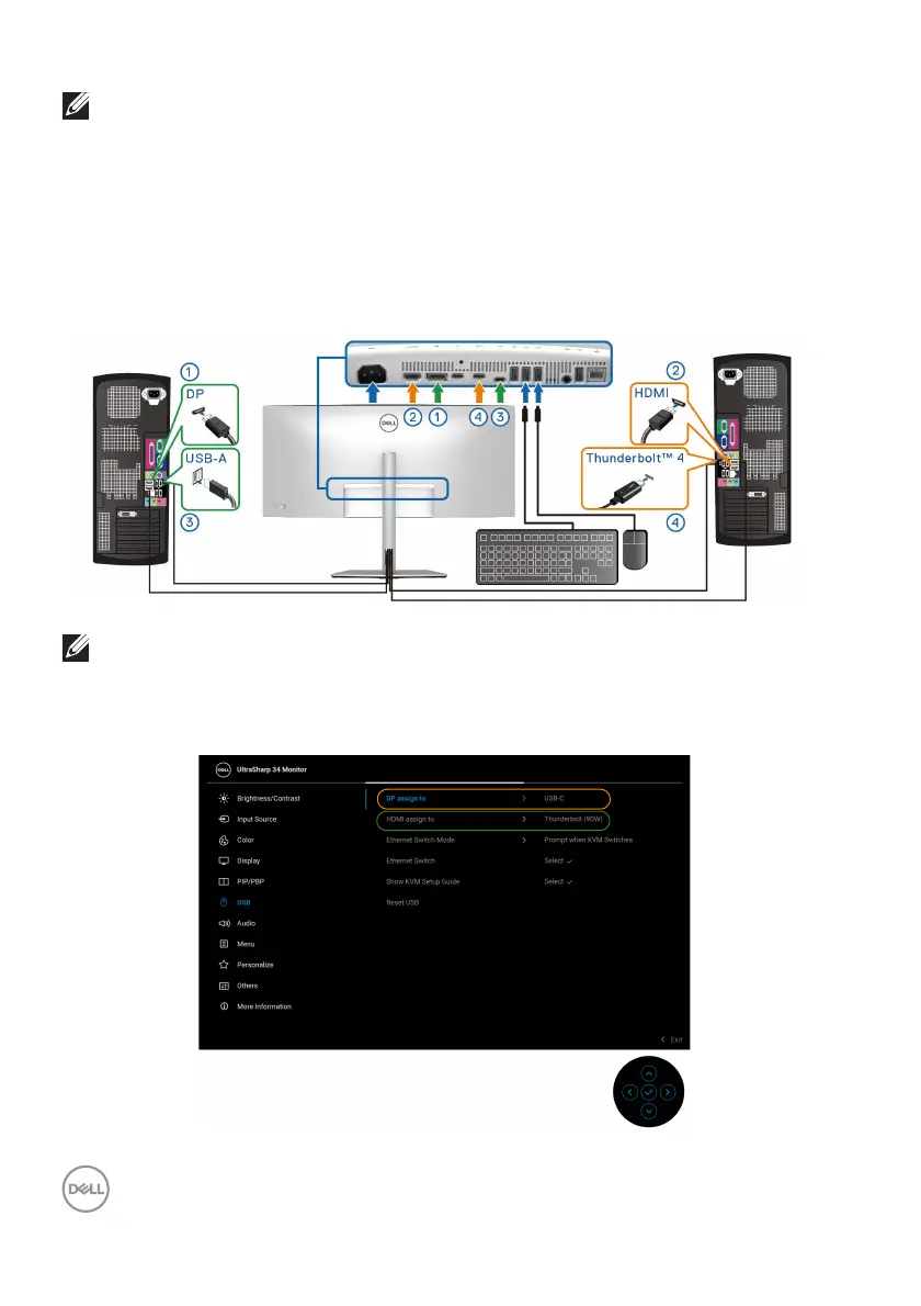 a. When connecting DP + USB-C (data only) to computer 1 and HDMI +
