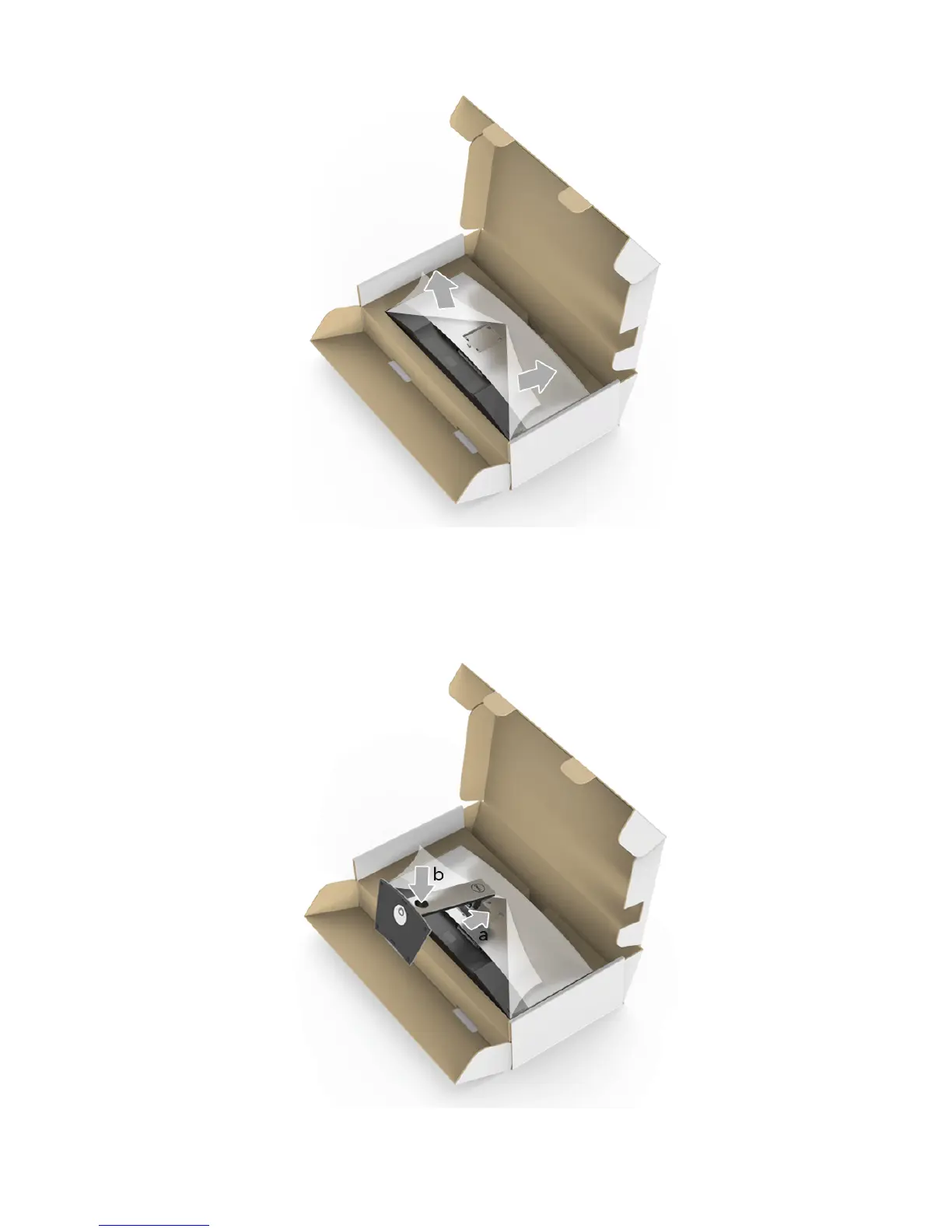 5 Lift the cover, as shown, to expose the VESA area for stand assembly.
