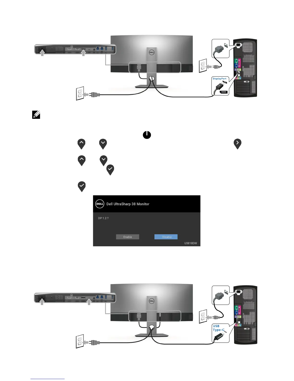 NOTE: The default out of factory setting in the U3818DW is DP1.2. If the monitor
