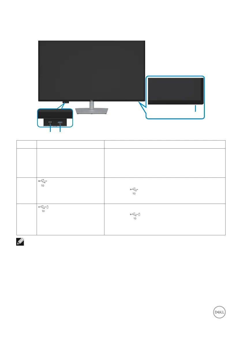 1 Power LED indicator Solid white light indicates the monitor is turned