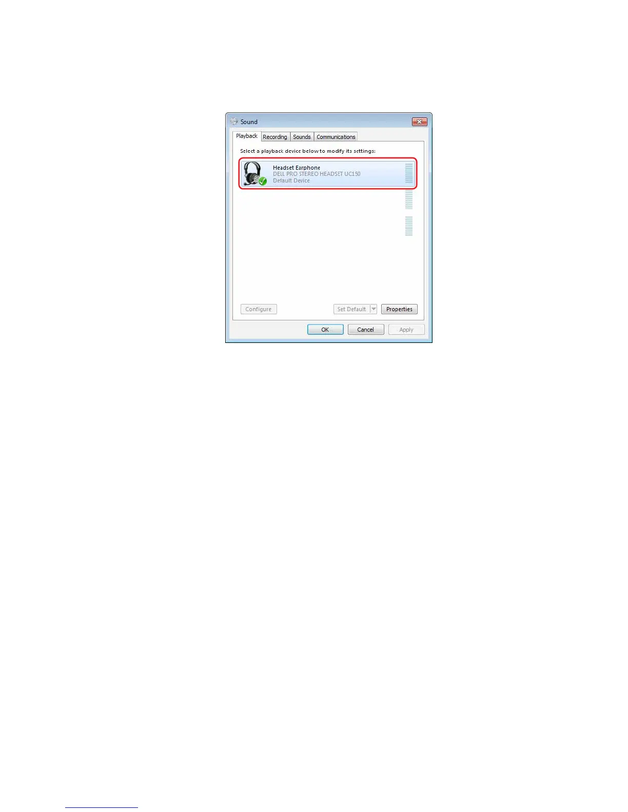 2. Set the Headset Earphone (Dell Pro Stereo Headset UC150) as the