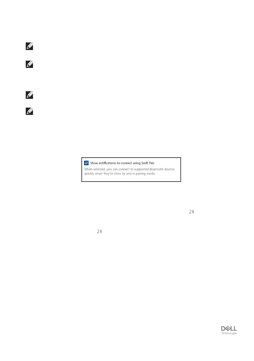 NOTE: For Bluetooth pairing you can use Dell Pair, Swift Pair, or manual pair option.