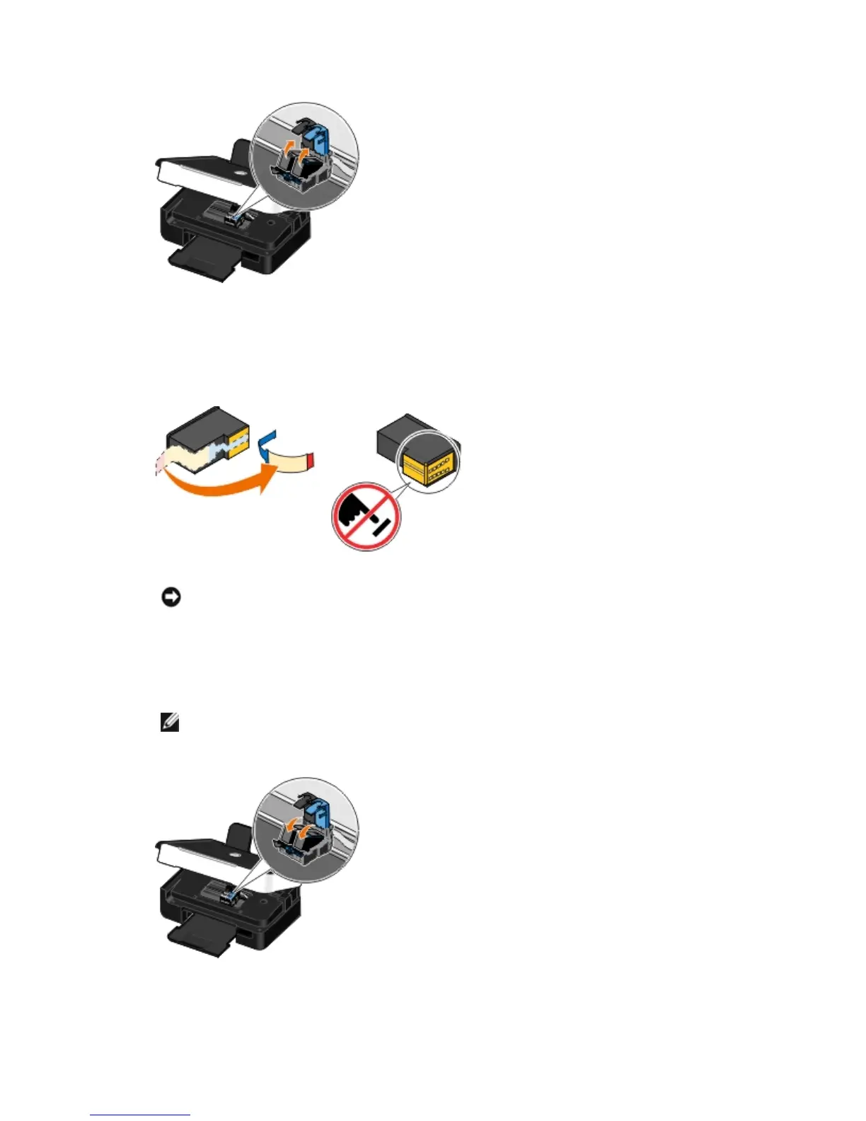 NOTICE: Do not touch the gold contact area on the side or the metal nozzles on the