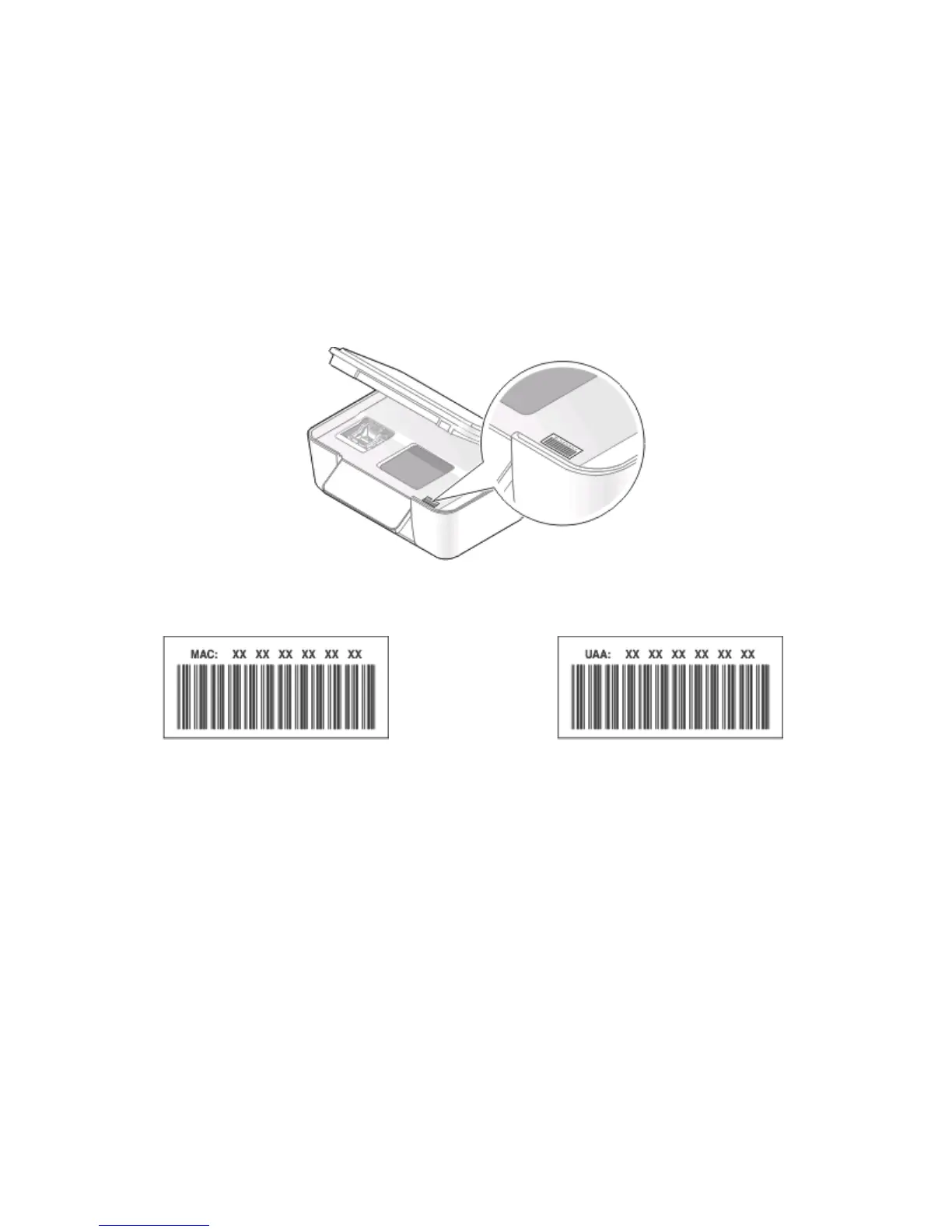 The MAC address label is located inside the printer.
