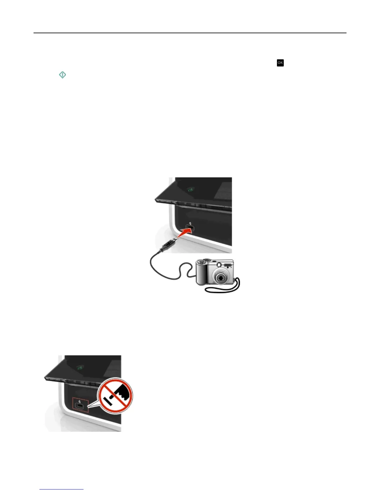then the camera is detected as a flash drive, or an error message is displayed on the printer control panel.