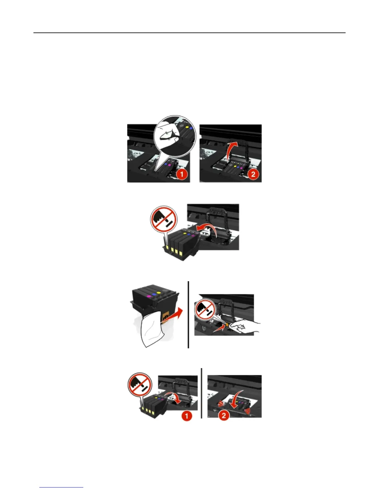 Warning—Potential Damage: Do not touch the cartridge contacts with bare hands to avoid damage and print