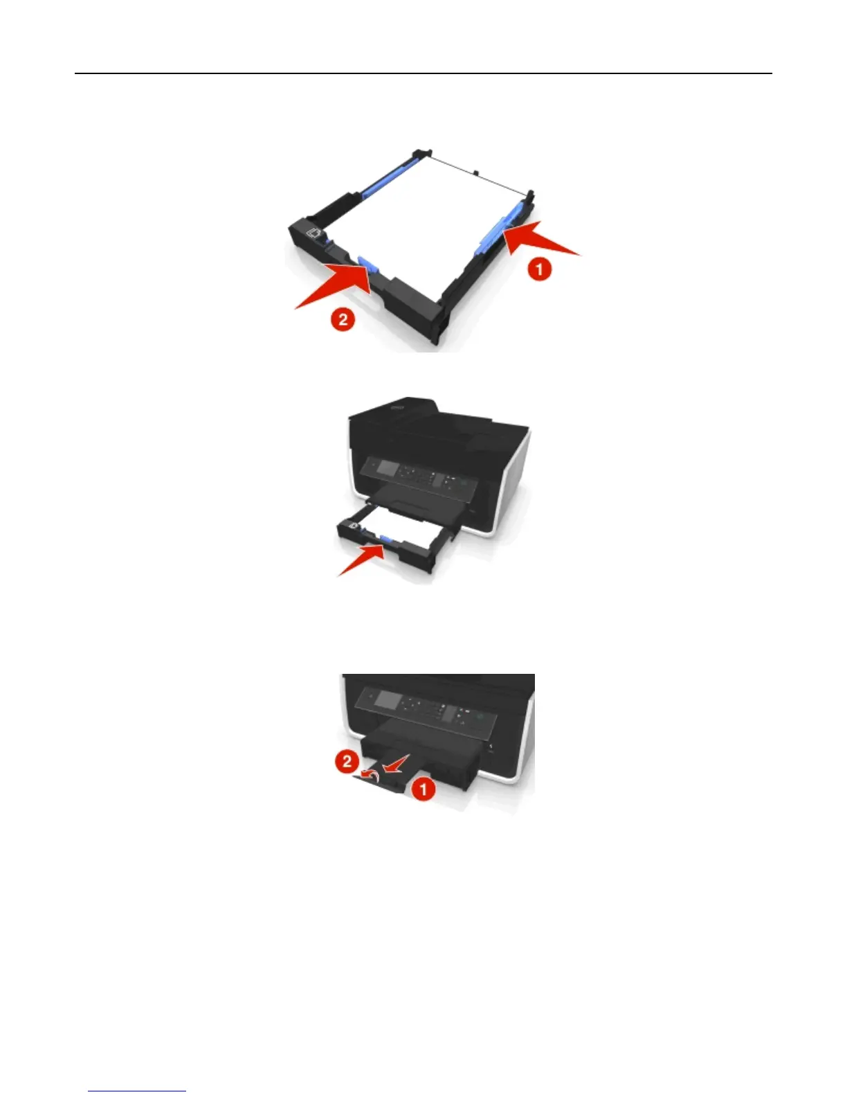 Note: If you extended the tray to accommodate A4- or legal-size paper, then the tray sticks out from the front of