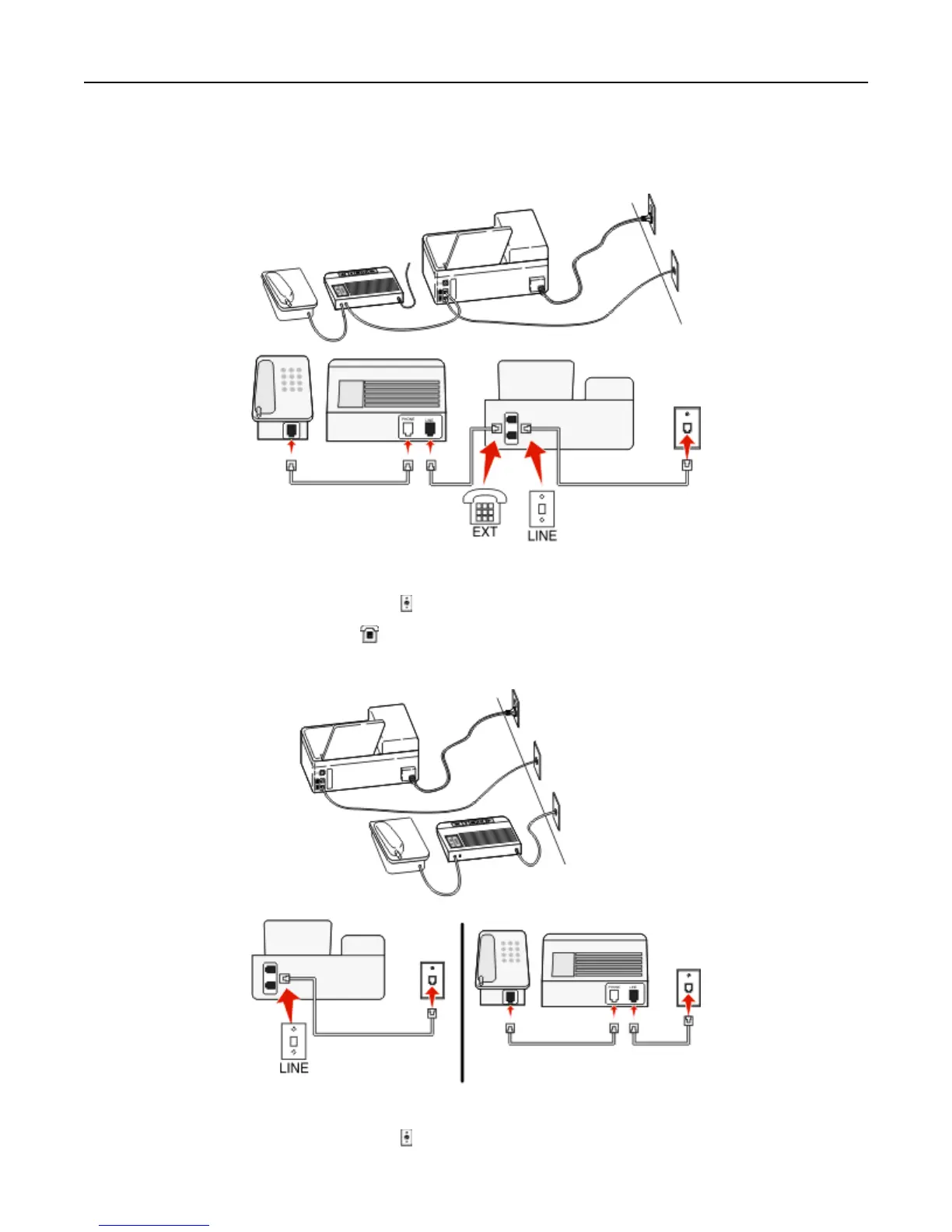 2 Remove the protective plug from the port of the printer, and then connect the answering machine to the port.